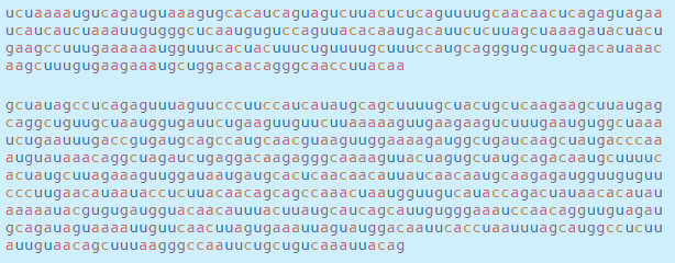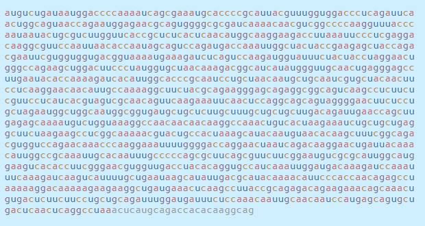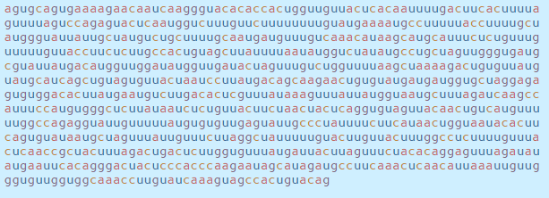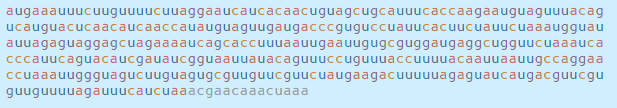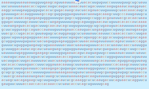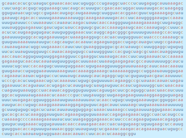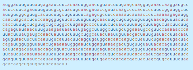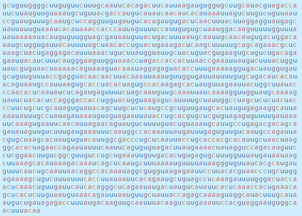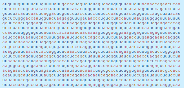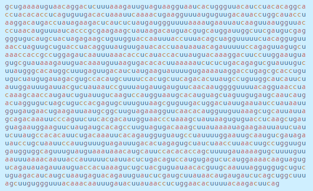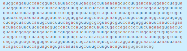 이 서열은 감염된 세포 내부의 기계를 모아 RNA 문자(a, c, g 및 u)를 읽고 코로나 바이러스 단백질로 번역하며,