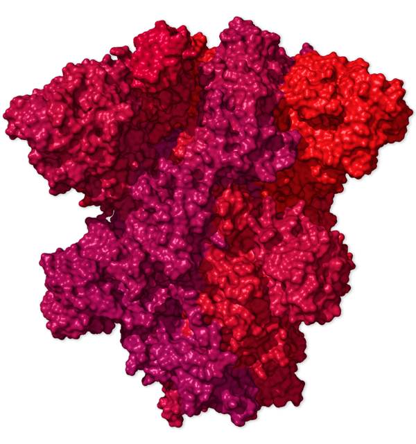 S 단백질은 3 개의 그룹으로 스스로 배열함으로써 바이러스 표면에 현저한 스파이크를 형성한다. 이 왕관 모양의 스파이크가 코로나 바이러스의 이름이 되었다.