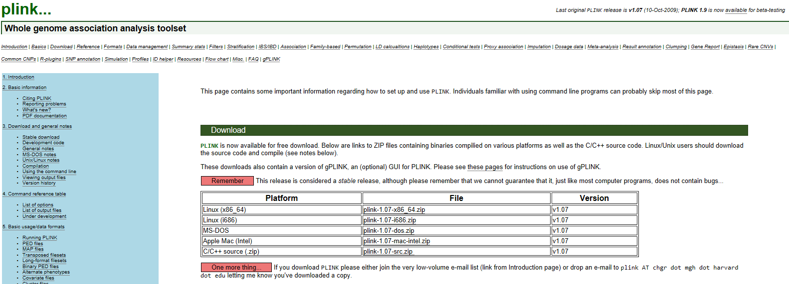 http://zzz.bwh.harvard.edu/plink/download.shtml에서 다운받을 수 있으며, tutorial도 볼 수 있다.