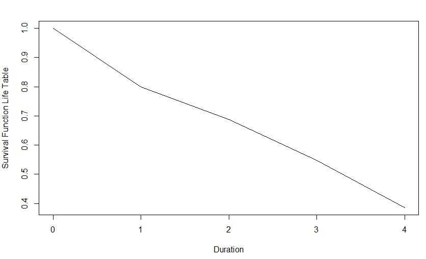 plot(time.interval[1:5], fit.lifetab[,5], type="l", xlab="Duration",