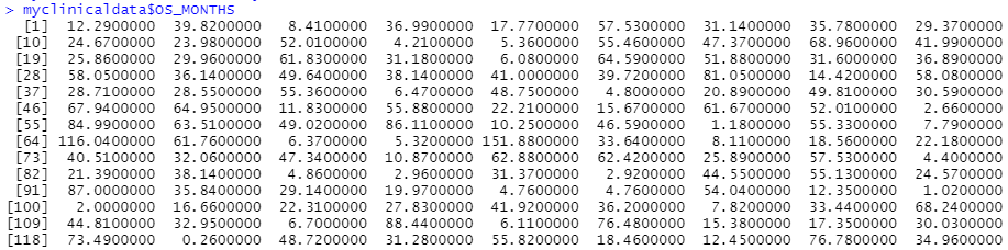 myclinicaldata$OS_MONTHS
