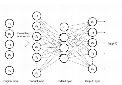 은닉 뉴런의 수나 입력 뉴런의 수가 많은 경우에 페널티를 주어도 흥미로운 특징을 뽑아낼 수 있음. 이 때 줄 수 있는 페널티로 noise 추가가 있음. 즉, noise로 손상된 데이터를 인풋으로 사용하고 noise가 제거된 데이터를 출력으로 사용하는 것.